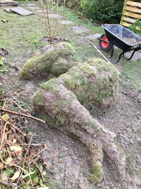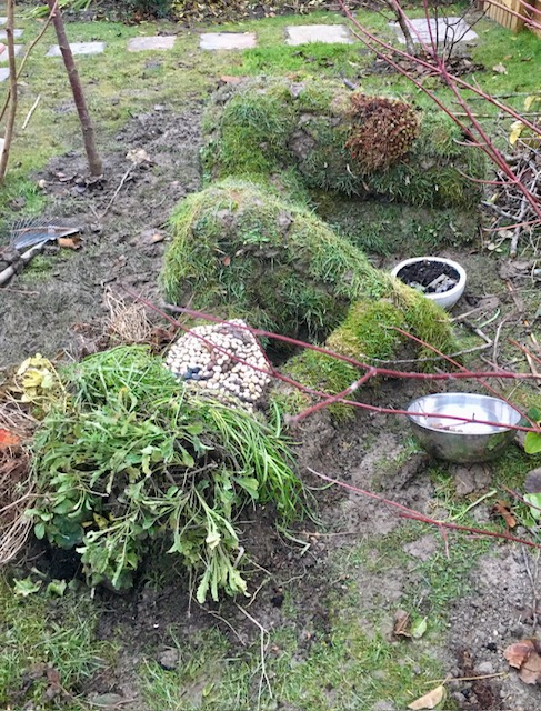 I created Earth Mother from the waste earth dug up when laying a garden path; I noticed the pile of clods had female form and so for fun, started work to shape her. She symbolises the connection I feel with the earth, how enjoyable it is to mess about in the earth, and how good it feels to reconnect with the child within. Over time, she has gradually returned to the earth, helped also by my dog, who is a digger. Earth mother has inspired various other art works, some complete and some still in progress.