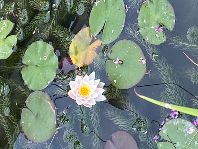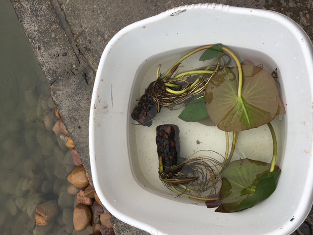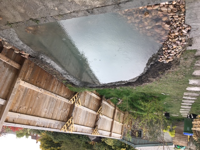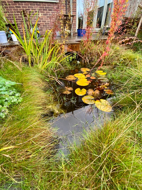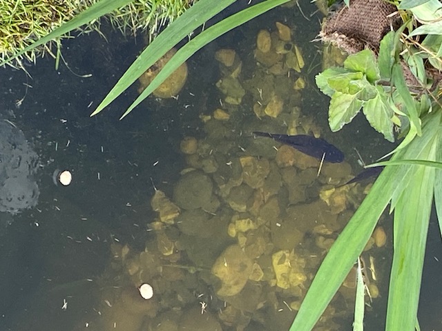 A created a pond in my garden because of the body of water that is a recurring theme in my art work, in particular relating to St Dyfnog's Well. My pond is a peaceful place to sit beside, great for wildlife, and a continuous source of inspiration. The fish were accidental, and must have arrived as eggs on some of the water plants.
